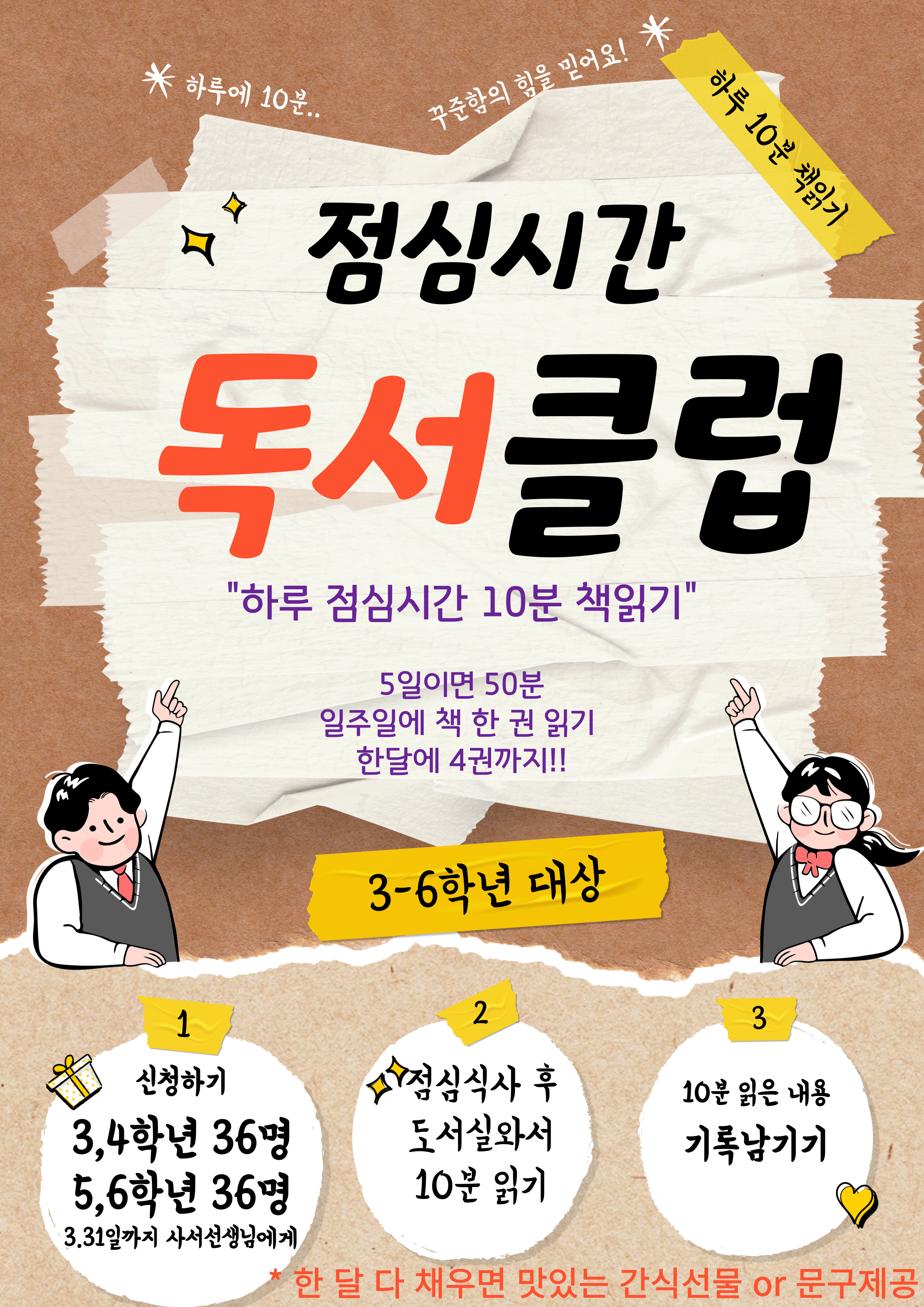 [독서동아리] 점심시간 10분 독서클럽(3-6학년대상)-매월 멤버모집:1학기-6월까지 운영